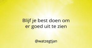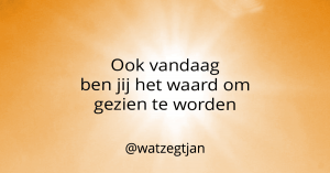 Ik ben Jan Monster, o.a. blogger bij Wat zegt Jan. In mijn blogs ben ik open, doordringend en evenwichtig. Ik onderzoek wie ik ben en wat ik wil/kan veranderen. Wil jij mijn zoektocht niet missen, volg dan de “Wat zegt Jan” pagina’s op WordPress.com, LinkedIn, Twitter, Instagram en Facebook. Wil je een keer met mij van gedachten wisselen of een afspraak voor een coaching dan kan je hier contact met me opnemen.