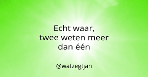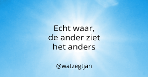 Ik ben Jan Monster, o.a. blogger bij Wat zegt Jan. In mijn blogs ben ik open, doordringend en evenwichtig. Ik onderzoek wie ik ben en wat ik wil/kan veranderen. Wil jij mijn zoektocht niet missen, volg dan de “Wat zegt Jan” pagina’s op WordPress.com, LinkedIn, Twitter, Instagram en Facebook. Wil je een keer met mij van gedachten wisselen of een afspraak voor een coaching dan kan je hier contact met me opnemen.