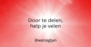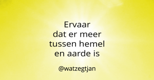 Ik ben Jan Monster, o.a. blogger bij Wat zegt Jan. In mijn blogs ben ik open en evenwichtig. Ik onderzoek wie ik ben en wat ik wil/kan veranderen. Wil jij mijn zoektocht niet missen, volg dan de “Wat zegt Jan” pagina’s op WordPress.com, LinkedIn, Twitter, Instagram en Facebook. Wil je een keer met mij van gedachten wisselen of een afspraak voor een coaching dan kan je hier contact met me opnemen.