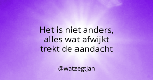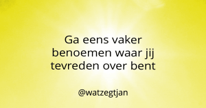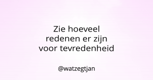 Ik ben Jan Monster, o.a. blogger bij Wat zegt Jan. In mijn blogs ben ik open en evenwichtig. Ik onderzoek wie ik ben en wat ik wil/kan veranderen. Wil jij mijn zoektocht niet missen, volg dan de Wat zegt Jan-pagina’s op WordPress.com, LinkedIn, Twitter, Instagram en Facebook. Wil je een keer met mij van gedachten wisselen of een afspraak maken voor een coaching, dan kan je hier contact met me opnemen.
