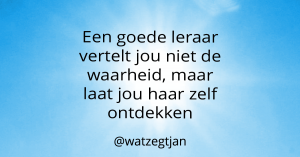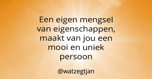 Ik ben Jan Monster, o.a. blogger bij Wat zegt Jan. In mijn blogs ben ik open en zoek ik de nuance. Ik onderzoek wie ik ben en hoe ik verander. Wil jij mijn zoektocht niet missen, volg dan de Wat zegt Jan-pagina’s op WordPress.com, LinkedIn, Twitter, Instagram en Facebook. Wil je een keer met mij van gedachten wisselen of een afspraak maken voor een coaching, dan kan je hier contact met me opnemen.