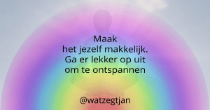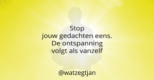 Ik ben Jan Monster, o.a. blogger bij Wat zegt Jan. In mijn blogs ben ik open en zoek ik de balans. Ze zijn o.a. geïnspireerd door mijn reis tot yogaleraar. Wil jij mijn zoektocht niet missen, volg dan de Wat zegt Jan-pagina’s op Instagram, Facebook, LinkedIn, Twitter en WordPress.com, Wil je een keer samen met mij kijken hoe jij kan ontspannen, dan kan je hier contact met me opnemen.