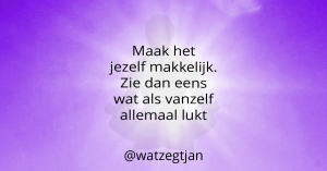 Wie het kleine ziet, heeft inzicht. Wie in zachtheid verblijft, heeft kracht. - Lao-TseIk ben Jan Monster, o.a. blogger bij Wat zegt Jan. In mijn blogs ben ik open en zoek ik de balans. Ze zijn o.a. geïnspireerd door mijn reis tot yogaleraar. Wil jij mijn zoektocht niet missen, volg dan de Wat zegt Jan-pagina’s op Instagram, Facebook, LinkedIn, Twitter en WordPress.com, Wil je een keer samen met mij kijken hoe jij zachtheid bij jezelf kan toepassen, dan kan je hier contact met me opnemen.