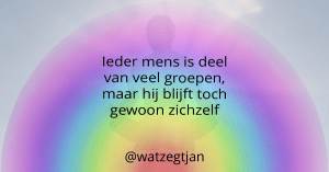 Ik ben Jan Monster, o.a. blogger bij Wat zegt Jan. In mijn blogs ben ik open en zoek ik de balans. Ze zijn o.a. geïnspireerd door mijn reis tot yogaleraar. Wil jij mijn zoektocht niet missen, volg dan de Wat zegt Jan-pagina’s op Instagram, Facebook, LinkedIn, Twitter en WordPress.com, Wil je een keer samen met mij kijken wie jij eigenlijk bent, dan kan je hier contact met me opnemen.