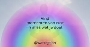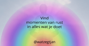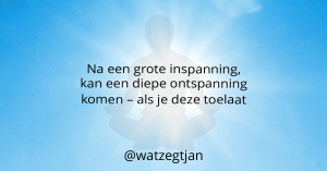 Toch zit ik er – zoals gezegd – niet doorheen. Ik heb het in de donkerste dagen van het jaar best wel eens lastig gehad. Ik had toen zeker profijt van een vakantie kunnen hebben. Alleen door dat niet te doen, werd ik gedwongen om op een andere manier een uitweg te zoeken. Het antwoord op te veel spanning en onrust is simpel: ontspanning en rust. Normaal vind je dat in een vakantie. Ik begin nu langzaam te leren dat ik elke dag iets rustiger aan kan doen. Ik hoef niet alles maximaal te doen. Zeker niet elke dag. Door de ruimte te nemen om rust in mijn handelingen te brengen, ontstaat er ontspanning. Elk keer is er een kans om rust te vinden.