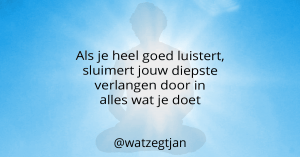 Ik ben Jan Monster, o.a. blogger bij Wat zegt Jan. In mijn blogs ben ik open en zoek ik de balans. Ze zijn o.a. geïnspireerd door mijn reis tot yogaleraar. Wil jij mijn zoektocht niet missen, volg dan de Wat zegt Jan-pagina’s op Instagram, Facebook, LinkedIn, Twitter en WordPress.com, Wil je een keer samen met mij kijken naar wat jij wil of verlangt, dan kan je hier contact met me opnemen.