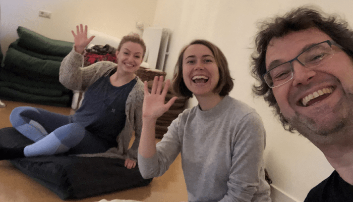 Om iets nieuws te proberen, moet je voor je gevoel een risico nemen. Het voelt kwetsbaar en “naakt”. Het is makkelijker om je open te stellen voor een nieuwe ervaring als de omgeving vertrouwd is. Voor mij was de vertrouwde omgeving het fijne gebouw van de Saswitha Opleiding voor Yoga. In de lessen heerst er een sfeer van ruimte, ruimte om helemaal jezelf te mogen zijn. Dat is een belangrijke voorwaarde. Ik had daarnaast het geluk dat Britt en Emma – twee yogi’s die zelf al les geven – naast mij stonden. Zij gaven mij het gevoel van vertrouwen dat we het konden. Dat we er voor elkaar waren en dat het goed was zoals het was. Wat ben ik toch een geluksvogel dat ik zulke mooie mensen in mijn omgeving heb.