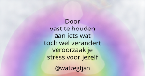 Ik heb een makkelijk leven. Ik heb ook veel geluk en succes gehad. Maar misschien is mijn geluk des te groter geweest doordat ik heb leren accepteren dat ik geluk niet vast kan houden en door in te zien dat wat niet leuk was voorbij zou gaan. Dus als ik verzucht “houd nou niet vast aan wat was”, dan zeg ik dat niet omdat ik vind dat je dat niet mag doen. Doe het gerust. Alleen ik gun jou ook dat je niet krampachtig vasthoudt aan wat op gegeven moment toch gaat veranderen. Laat los wat je vasthoudt en voel de bevrijding, maar daarover de volgende keer meer.
