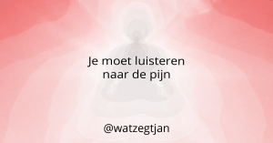 Dat ik geen fysieke pijn voel in mijn hand of voet is best gevaarlijk. Ik kan mijn hand daardoor verbranden tijdens het koken of er is een kans dat ik blijf doorlopen met een wondje aan mijn voet, met alle gevolgen van dien. Het is verstandig om te luisteren naar fysieke pijn, want het lichaam geeft dan immers signalen waar je op moet letten, maar het is ook van groot belang om mentale pijn te zien en te erkennen.