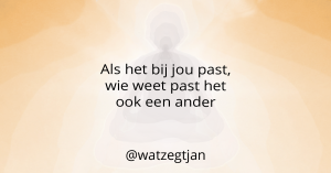Ik ben Jan Monster, o.a. blogger bij Wat zegt Jan. Wil je verder praten over dit blog, dan kan je hier contact met me opnemen. Wil jij mijn zoektocht naar mijzelf niet missen, volg dan de Wat zegt Jan-pagina’s op Instagram, Facebook, LinkedIn, Twitter en WordPress.com.