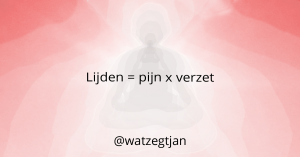Ik las het voor het eerst op Twitter, maar later zei mij psycholoog het ook: pijn en verdriet worden groter hoe meer je je er tegen verzet. Ik moest toen gelijk denken aan een verhaal uit het Boeddhisme over de tweede pijl. De eerste pijl is daarin pijn of verdriet die je voelt (alsof je door een pijl geraakt bent). Die pijn is echt en reëel. De tweede pijl gaat over dat je bijvoorbeeld vindt dat je de pijn niet mag voelen of had moeten voorkomen, kortom frustratie of zelfverwijt. De eerste pijl komt van buiten en kan je niet voorkomen, maar de tweede pijl komt van binnen en doe jij jezelf aan. Die pijn voelt net zo reëel, maar die extra pijn hoeft er niet te zijn. Je veroorzaakt het immers zelf.