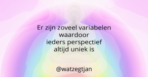 Jij maakt niet mee wat ik meemaak waardoor jouw perspectief anders is dan het mijne. (Beeld Wat zegtJan)