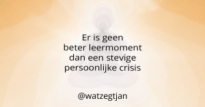 Toen ik eind twintig was had ik een persoonlijke en gezondheid crisis waardoor ik mijzelf op een ander spoor heb gezet. Ik wilde in die tijd mijn werk zo perfect mogelijk doen, waarmee ik mijzelf beschadigde. Ik leerde van die crisis. Ik heb sindsdien mijn werk nooit meer als het allerbelangrijkste in mijn leven gezien.