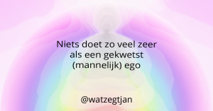 Ik moet dat beeld van mijzelf laten varen, want dat kan ik niet meer zijn. Dat mens is voorbij. Moet ik dus opnieuw op zoek naar mijzelf? Nee. Eigenlijk niet, want misschien is het verhaal dat verloren gaat er slechts eentje over een gekwetst (mannelijk) ego. Ik geloof niet dat ik die zorgzame en hulpvaardige man als belangrijkste onderdeel van mijn identiteit had. Zoals gezegd ben ik ten diepste wel iemand die het binnenste naar buiten brengt door te graven naar onderliggende oorzaken of drijfveren en die vervolgens aan het licht doet komen. En als ik reacties op mijn blogs zie, lijk ik dat talent niet verloren te hebben. Althans, dat dacht en denk ik tot nu toe. Misschien ga ik er nog achter komen dat ook dat idee slechts ego is. Maar dat verhaal bewaar ik maar voor een volgend blog.