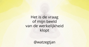 Flauw gezegd is voor mij de werkelijkheid dus in eerste instantie niet meer dan een beeld dat ik in mijn hoofd heb van die werkelijkheid. Misschien is het daarom dat sommige filosofieën zeggen dat het hele leven maar een illusie is. Die filosofie hang ik niet aan. Het leven is reëel, alleen het beeld wat ik ervan in mijn hoofd heb, hoeft niet per se helemaal over een te komen met hoe dat leven echt is.
