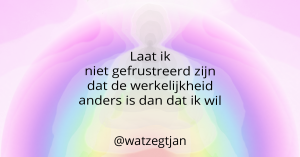 In mijn werkelijkheid is er genoeg pijn en verdriet zonder dat mijn zelfbewustzijn daar een schepje bovenop hoeft te doen. Ik heb al spasmen, verlies van gevoel en een constante moeheid. Dit alles is echt. Mijn frustratie dat ik al die beperkingen niet wil hebben zit alleen maar in mijn hoofd. Deze pijn kan ik verlichten door mij bewust te zijn van het feit dat deze teleurstellingen alleen maar voortkomen uit mijn zelfbewustzijn. Door mijn bewustzijn te richten op hoe het hier en nu is, voel ik mijzelf samenvallen en vind ik daarin naast verlichting van de pijn, ook vrede en blijheid met wat is. Laat ik dus in het hier en nu leven en wie weet kan ik daar de niet-echte pijn mee stoppen.