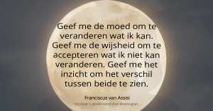 Als ik dan geen macht heb om te veranderen “wat is”, moet ik dan alles maar gelaten en passief over mij heen laten komen? Nee dat denk ik niet, maar laat ik mij ervan bewust zijn dat ik met heel veel zaken niets hoef te doen en ik alleen (mentale) kracht in hoef te zetten waar het nuttig is. Ik weet niet of ik zoveel inzicht heb om dat onderscheid te maken, maar laat ik gewoon keer-op-keer blijven oefenen om alleen maar te “zijn-met-wat-is”: de werkelijkheid. Laat ik niet denken dat ik iets hoef los te laten, te accepteren of me eraan over te geven, want de werkelijkheid is immers toch gewoon zoals die is ook zonder al dat gedoe van mij.