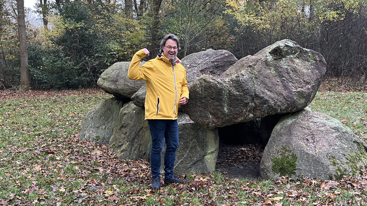 Daar sta je dan bij een hunebed stoer te doen voor de foto, alsof jij zo sterk was dat jij de stenen op elkaar hebt gelegd. Natuurlijk is dit alles met een knipoog en iedereen die mijn verhaal en beperkingen kent zal de (wrange) grap ervan inzien. En toch zit er in mij, en misschien wel in ons allemaal, een vermogen tot overschatting van onze menselijke kracht om dingen naar onze hand te kunnen zetten. Ik zou het zelfs onze arrogantie willen noemen. Ik kan best denken dat ik realiteitszin heb, maar keer op keer blijken mijn omgeving en ik mijn kracht of macht te overschatten.