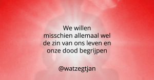 Ik ben Jan Monster, de blogger van Wat zegt Jan. Je kunt hier contact met me opnemen. Wil jij dagelijks citaten uit mijn blogs zien of geen blog missen, volg dan de Wat zegt Jan-pagina’s op Bluesky, Facebook, Instagram, LinkedIn, Threads, WordPress.com en X