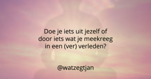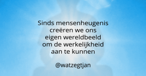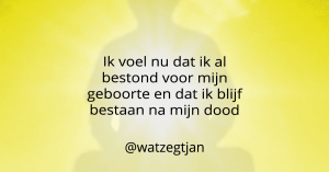 Ik las ergens dat Millennials levensfilosofieën en geloofsovertuigingen gebruiken als een all-you-can-eat-buffet en er de voor hen nuttige deeltjes uit kiezen. Er werd daar negatief over geoordeeld omdat zij daarmee alleen maar het zoet en niet het zuur nemen. Ik vraag mij af of dit echt waar is en of wij mensen dat niet altijd hebben gedaan. We geven een eigen draai aan het geloof dat we aanhangen zodat het ons past. Zoals jullie net hebben kunnen lezen heb ik dat volgens mij ook gedaan. Ik heb misschien wel een pastiche gemaakt van Marxisme, Katholicisme, Antroposofie, New age, coaching tools, yoga en Boeddhisme. Je kan zeggen dat ik er een rotzooitje van heb gemaakt. Al deze rotzooi die ik heb verzameld op mijn spiritueel pad behoort nu tot Jan’s mentale inboedel. Het doet er niet zoveel toe wat anderen daarvan vinden. Het is de janboel van mij en ik ben er best gelukkig mee. Ik hoop dat jij ook jouw pad hebt gevonden of dat anders dit blog jou helpt om diep te kijken naar wat voor jou een richting zou kunnen zijn. Het is tenslotte slechts jouw geest die de beste wereld voor jou creëert en wie weet er nou echt zeker wat de waarheid of werkelijkheid is?