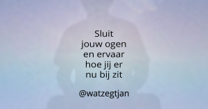 Elke stap is zowel onderdeel van ons meditatie-pad als een meditatie op zich. Dit hoop ik te laten zien in een reeks korte blogs waarin mijn verhalen zowel de reis als het doel zullen zijn. Lees vooral mijn komende blogs als je het leuk vindt om meditatie verder te ontdekken. Je kan jouw verkenningstocht op dit moment al starten door nu jouw ogen te sluiten als dat voor jou goed voelt, of anders jouw ogen geloken te houden en door je wimpers een halve meter voor je naar de grond te kijken. Hoe jij jouw ogen ook hebt, je hoeft niets te doen. Blijf een paar tellen hier en ervaar hoe je er nu bij zit. Geen oordeel, geen beschrijving en geen verwachting, alleen maar een moment van stilte waarin je ervaart wat er is. Niets meer, maar zeker ook niets minder. Als je dit hebt gedaan, dan heb je zojuist kennis gemaakt met meditatie. Gefeliciteerd! Ik gun je nog veel meer kennis van jezelf en van wat is. Spring je achterop bij mij en ga je mee op het meditatie-pad? Ik hoop het.