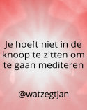 Ik hoop dat je weer hebt gemerkt hoe eenvoudig mediteren is. Ga zitten op een manier die voor jou goed is, gewoon op een stoel of op de grond, in kleermakerszit of op een kussentje in de lotushouding. Het maakt echt niet uit zolang de houding maar wakker en waardig is. In wakker en waardig zit naast een fysieke aanwijzing ook een mentale tip. Wil je kunnen mediteren is het handig als je alert en zonder oordeel bent. Ik noem het ook wel open, nieuwsgierig en aardig. Je gaat tenslotte je eigen geest ontdekken dus is het handig als je dat met liefdevolle aandacht doet.